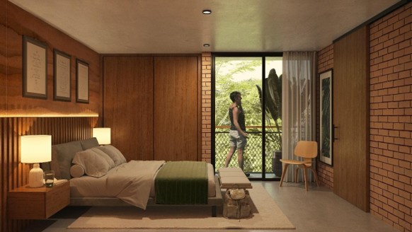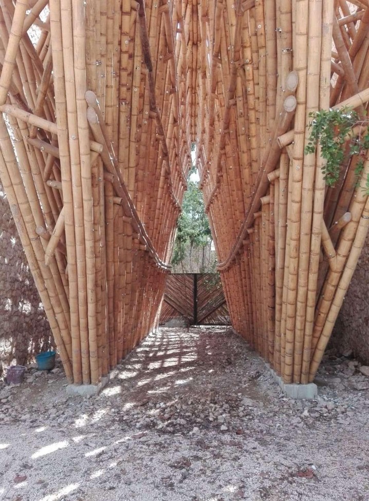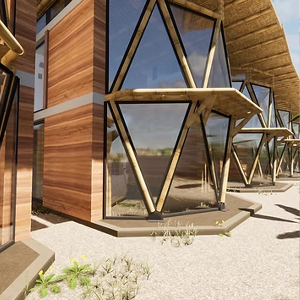 Este proyecto está diseñado con sistemas constructivos sustentables que combinan la materialidad estructural del Bambú y el sistema de Tierra Compactada.